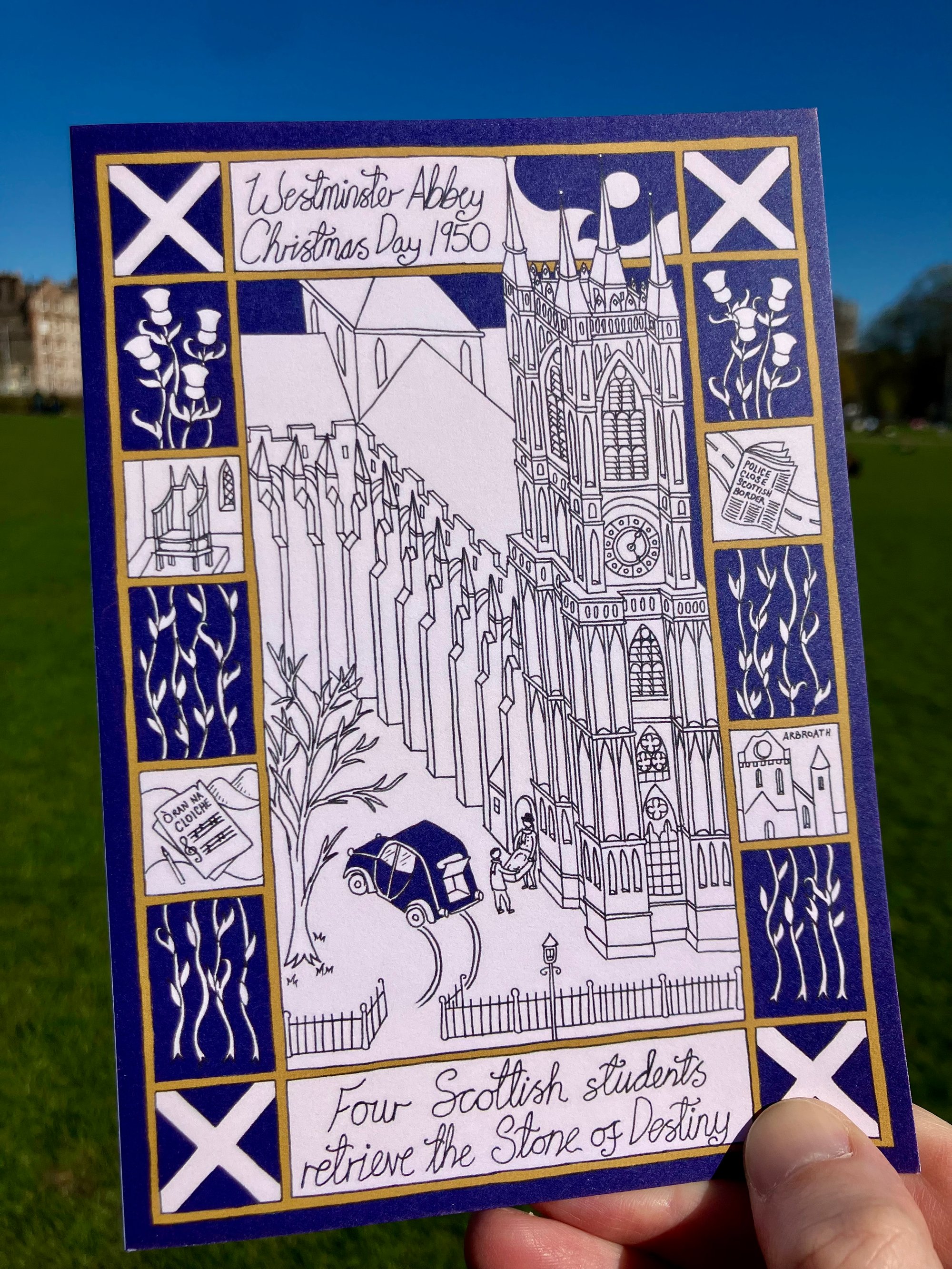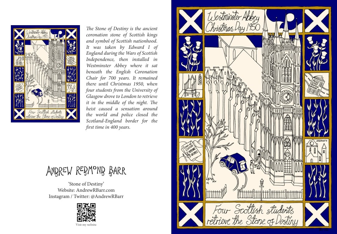 The Stone of Destiny is the ancient coronation stone of Scottish kings and symbol of Scottish nationhood. It was taken by Edward I of England during the Wars of Scottish Independence, then installed in Westminster Abbey where it sat beneath the English Coronation Chair for 700 years. It remained there until Christmas Day 1950, when four students from the University of Glasgow drove to London to retrieve it.
